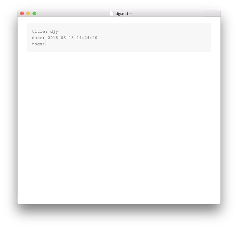 - 编辑markdown文件,可以使用markdown神器typora。可以看到markdown文件,里面自动生成了题目和时间,还可以写标签,这些我们先不去修改,这些是yaml内容,一般不去修改,修改不好会报错。我们直接在下面编辑一些内容。